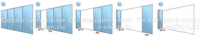 L'installation n'est pas particulièrement difficile. Le long du périmètre de l'ouverture de la fenêtre en bas et en haut, nos spécialistes fixent les guides, sur les vantaux, les fenêtres sont fixées avec des rainures métalliques et des roues y sont insérées pour l'ouvrir. Au niveau des joints des châssis, des joints spéciaux sont fixés pour fermer les fissures. Le système fonctionne de manière similaire au principe d'ouverture d'une armoire coulissante - il se déplace sur le côté.