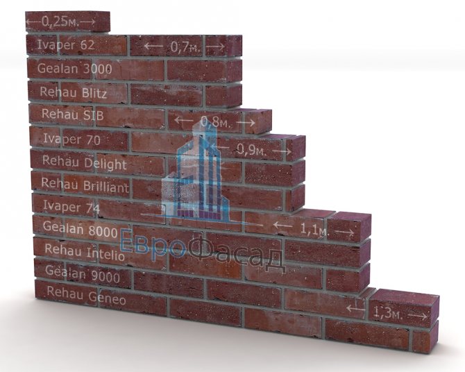 | Marque du système de profil | Profondeur d'installation (mm) | Nombre de caméras | Épaisseur maximale possible des unités de verre (mm) | Coefficient de résistance au transfert de chaleur des profilés avec armature en acier (W / m2 × ° C) |