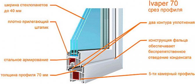 Le système IVAPER 70 est un développement exclusif des technologues russes. Le plastique à partir duquel les profilés à 5 chambres sont fabriqués est capable de résister au gel jusqu'à -55 ° C. Les propriétés d'économie de chaleur de ce système lui permettent d'être utilisé dans les régions aux hivers modérément froids. L'épaisseur des murs extérieurs et des linteaux intérieurs, correspondant à la classe «A», permet leur utilisation pour le vitrage des étages supérieurs. Renforcées avec des doublures en acier, les fenêtres Ivaper 70 sont capables de résister à des charges de vent accrues. La profondeur d'installation des profilés antigel est de 70 mm, ce qui augmente non seulement l'efficacité énergétique, mais également le niveau d'absorption du bruit des modèles de cette série.