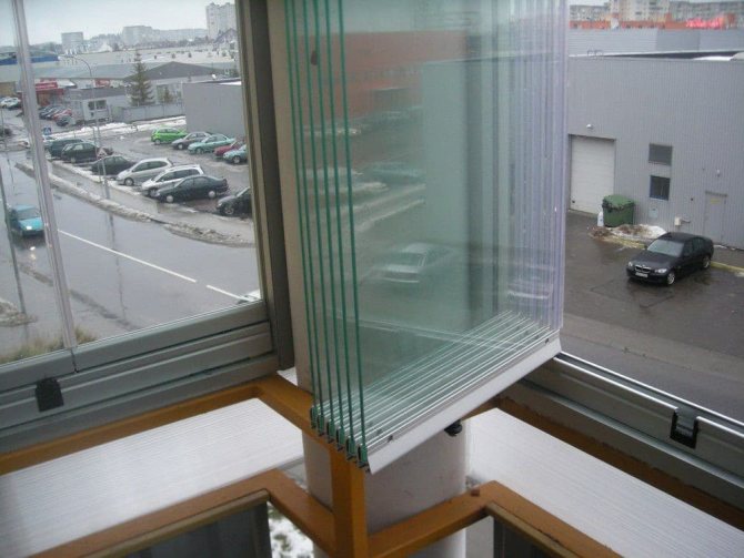 Glissement. Le mécanisme à rouleaux sur les rails pousse et fait coulisser les volets sans prendre de place supplémentaire. Souvent placé sur de petits balcons, car il économise de l'espace. Mais les mécanismes de glissement ne sont pas toujours capables de survivre aux fortes gelées: les rouleaux peuvent geler et ne permettront pas au châssis de bouger en hiver (ils décongelleront et travailleront au printemps).
