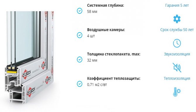 Les principales caractéristiques du modèle sont - largeur de profil accrue (jusqu'à 70 mm !) et cinq chambres à air... De plus, il est utile d'acheter des fenêtres en plastique Novotex Termo pour plusieurs autres raisons.