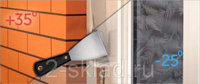 Le matériau s'étire bien, ce qui est extrêmement important lors du remplissage des joints dans la maçonnerie en brique ou en bois, ainsi que lors de l'isolation des espaces entre le cadre de la fenêtre et les ouvertures.
