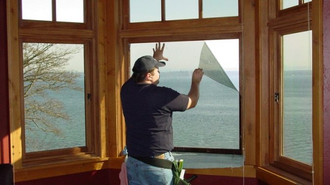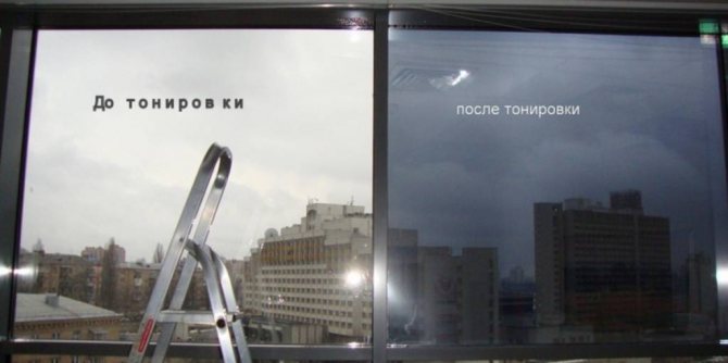 Sur certaines ressources, vous pouvez trouver des informations selon lesquelles la teinture peut être effectuée à la fois à l'extérieur et à l'intérieur de la pièce. Ce n’est pas tout à fait vrai. Le film, qui a été collé de l'intérieur, durera beaucoup plus longtemps, car il n'est pas exposé à la neige, à la pluie, il est plus facile de s'en occuper