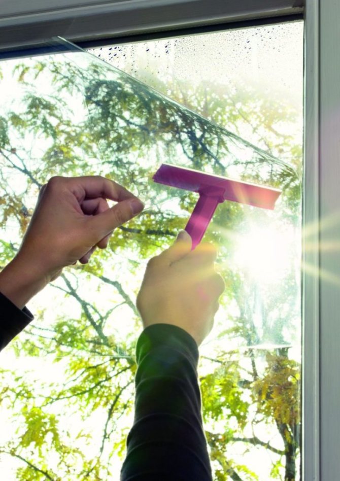 Pour résoudre le problème, vous pouvez garder les rideaux constamment tirés ou laisser le système divisé en marche, cependant, il sera beaucoup plus efficace de coller sur les fenêtres avec un composé spécial.