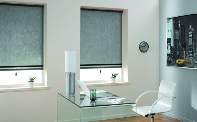 Cette solution à la question de savoir comment assombrir les fenêtres d'un appartement est l'une des plus belles. Il repose sur une toile monobloc et un rouleau sur lequel il est enroulé pendant le fonctionnement.