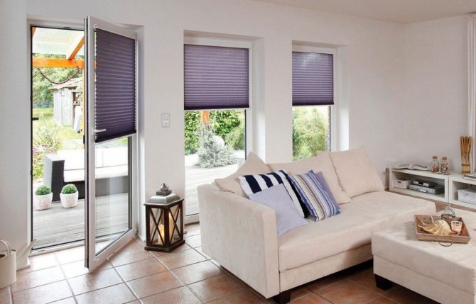 Une autre option consiste à sécuriser les stores ou les stores qui peuvent être abaissés le matin ou l'après-midi lorsque le soleil bat son plein. Les stores peuvent être sélectionnés non seulement verticaux, comme c'est souvent le cas dans les bureaux, mais aussi tout à fait à la maison - horizontaux ou plissés, qui ne ferment pas hermétiquement les fenêtres, mais avec une lumière de fond douce.