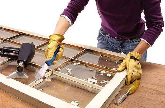 Les rayures peuvent généralement être peintes avec du vernis. Les perles de vitrage cassées peuvent également être collées ensemble, et les lieux de collage peuvent être recouverts de vernis ou recouverts d'un crayon de cire de couleur. Retirez le vieux mastic (ou mastic) à l'aide d'un ciseau, d'un couteau ou d'un poinçon.