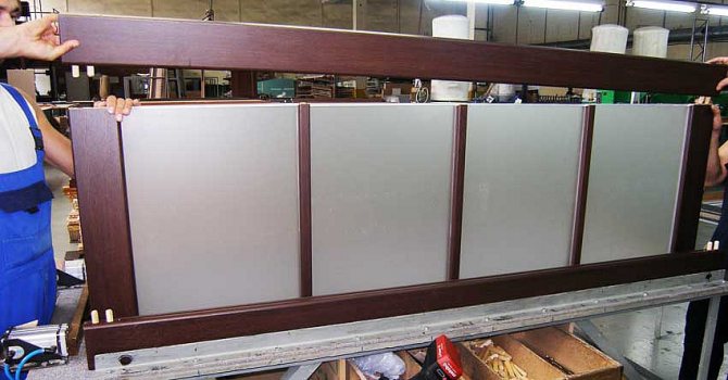 Le moment le plus difficile est l'assemblage, car il n'est pas difficile d'insérer le verre, mais il est un peu plus difficile de tordre la porte en arrière, sans distorsions. Il est préférable de faire cette entreprise ensemble afin de pouvoir contrôler tous les processus qui l'accompagnent.