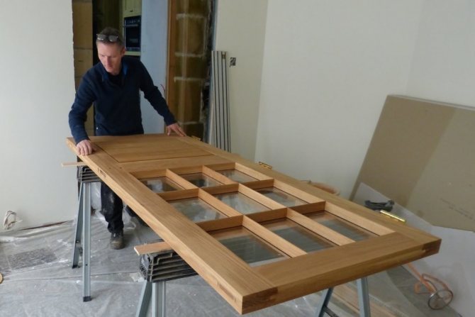 - la porte à panneaux ne peut pas être vitrée, vous devrez en acheter une neuve. Mais la salle des panneaux convient tout à fait à de tels travaux;