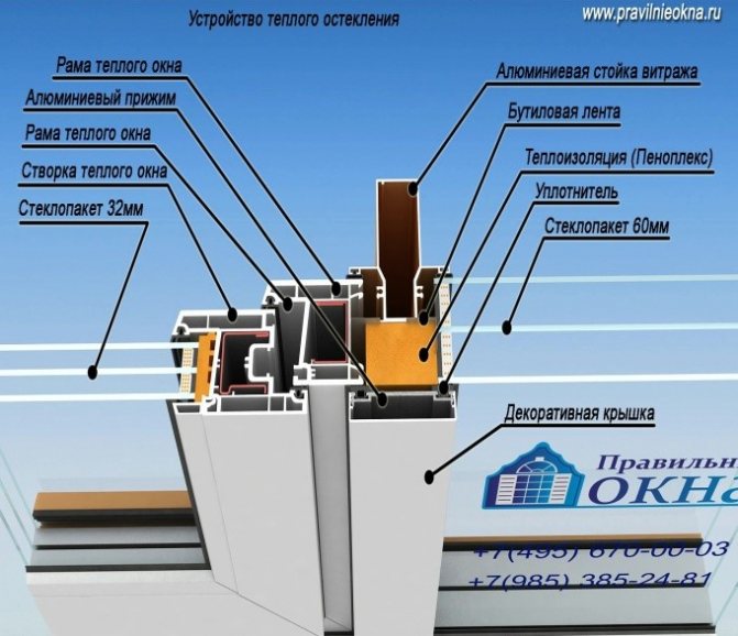 La structure est thermiquement séparée en installant des taux spéciaux d'isolation thermique. Ils sont créés à partir de polystyrène expansé, montés dans un vitrail. Si nécessaire, les éléments structurels individuels sont démontés. La fixation est réalisée sur des équerres de support, la fixation est réalisée dans la dalle de sol, ou dans la crémaillère verticale du vitrail.