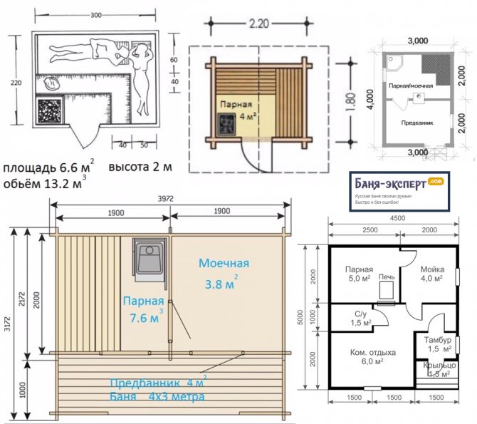Il est recommandé de ne pas agrandir la zone du hammam. Après tout, il doit être réchauffé et le régime de température et d'humidité nécessaire maintenu, et la consommation supplémentaire de bois de chauffage n'intéresse personne. Les dimensions approximatives du hammam de 2,5 x 2,5 mètres peuvent être considérées comme tout à fait suffisantes pour un bain familial.