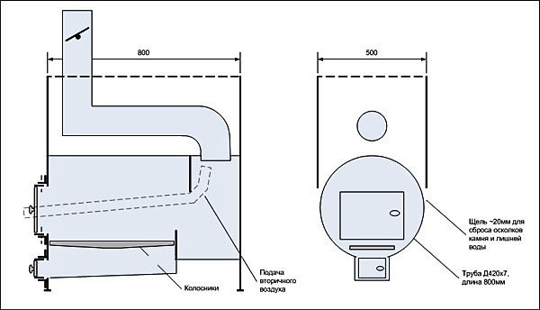 Dans le schéma des chaudières faites maison pour un bain à bois, les éléments suivants sont nécessairement présents:
