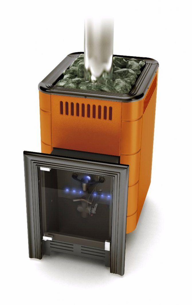Modèle compact pour aménager un petit bain avec un hammam jusqu'à 14 m2. mètres. La chambre de combustion est en acier de 6 mm d'épaisseur. Le corps et le système de cheminée sont en acier de 4 mm d'épaisseur, dans les endroits où la charge thermique est la plus élevée - acier revêtu jusqu'à 6 mm.
