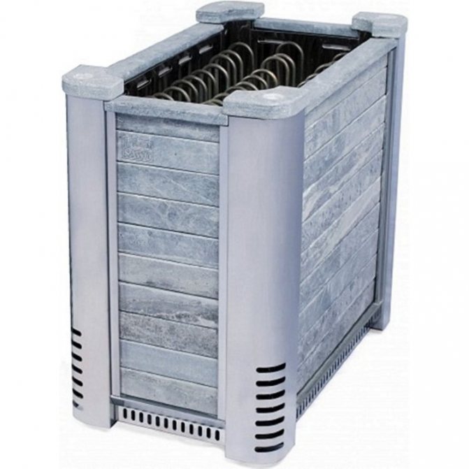 - Caractéristiques du radiateur. Un des points les plus importants. Les poêles de sauna modernes sont équipés d'éléments chauffants, de ruban adhésif et d'appareils de chauffage combinés. L'élément chauffant (tubulaire) peut être chauffé à des températures très élevées, mais il sert relativement peu. Si vous décidez d'acheter un poêle avec un élément chauffant, assurez-vous qu'il est fait d'un alliage inoxydable.