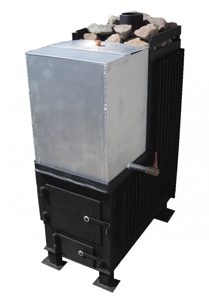 Tout réservoir de stockage dans la baignoire peut être chauffé de deux manières - soit à partir de la chambre de combustion elle-même, soit à partir de la cheminée. Le réservoir à distance ne peut être chauffé qu'au moyen des tuyaux partant du serpentin du four. L'inconvénient de la conception est la nécessité d'être proche du poêle (pas plus de 300 cm), mais pour la plupart des hammams, cela suffit.