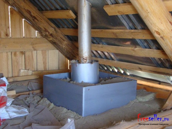 - L'isolation du passage de cheminée à travers le plafond est réalisée. La meilleure option consiste à isoler thermiquement l'unité de débit du plafond à partir de minérite.