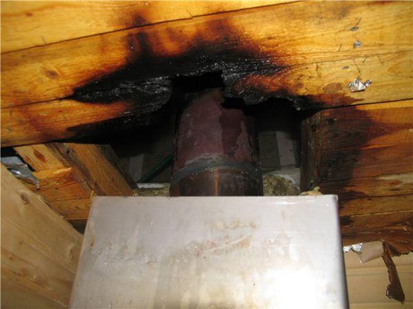 La version la plus dangereuse de la cheminée en termes de sécurité incendie est un tuyau métallique qui n'est pas protégé par un isolant thermique. La distance entre ces tuyaux et les structures en bois et en plastique ne doit pas être inférieure à 0,6 mètre. Mais même l'observation de cette distance ne vous protégera pas des brûlures en cas de contact accidentel, il est donc préférable d'isoler le tuyau sans attendre les problèmes.