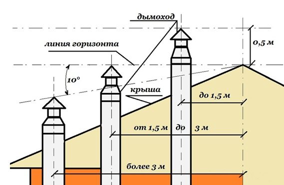 - la hauteur minimale à laquelle il faut faire sortir la cheminée sur le toit de la maison est de 0,5 m;
