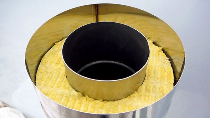 - la cheminée métallique doit être isolée avec une couche de laine de basalte (un type plus pratique de laine minérale) d'une épaisseur d'au moins 5 cm. L'enroulement est superposé;