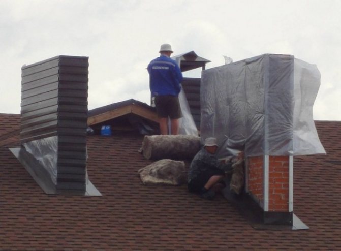 Noter! De cette façon, vous pouvez isoler 2-3 tuyaux de cheminée en même temps, s'ils sont sortis côte à côte.