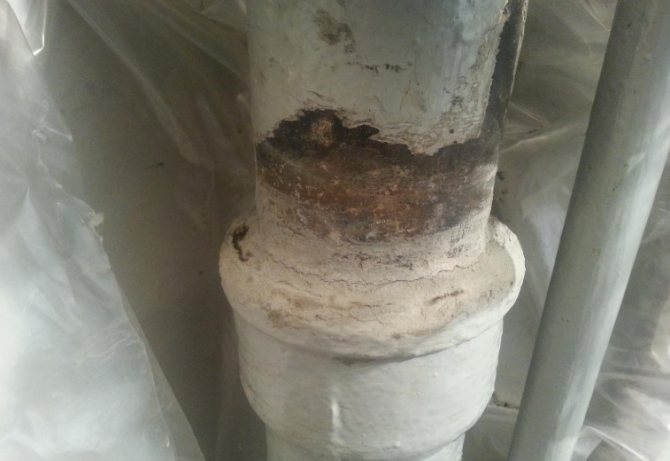 Important! Avant de réparer un tuyau en fonte, évaluez l'état général du pipeline. Si le tuyau est considérablement obsolète, recouvert de rouille et que son jeu interne est considérablement réduit en raison de dépôts, il est plus conseillé de remplacer l'ensemble du pipeline par un nouveau utilisant des tuyaux en polypropylène ou en polyéthylène.