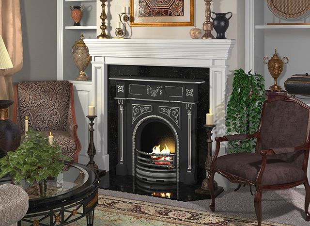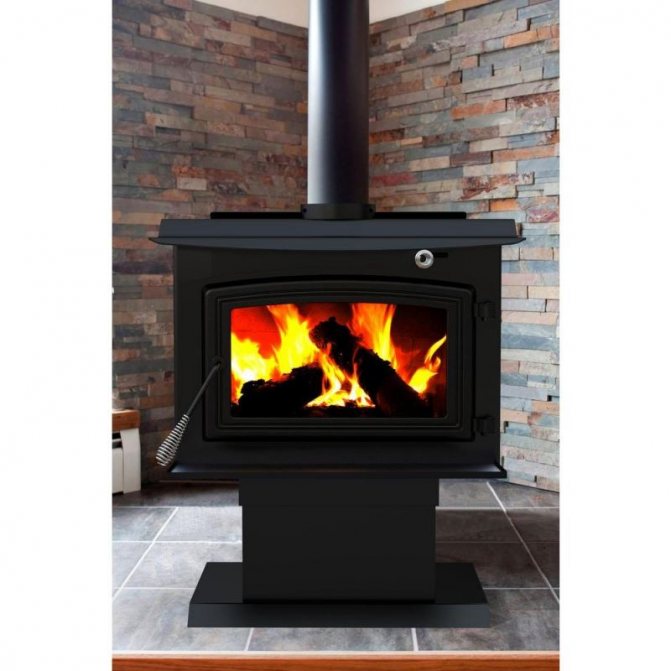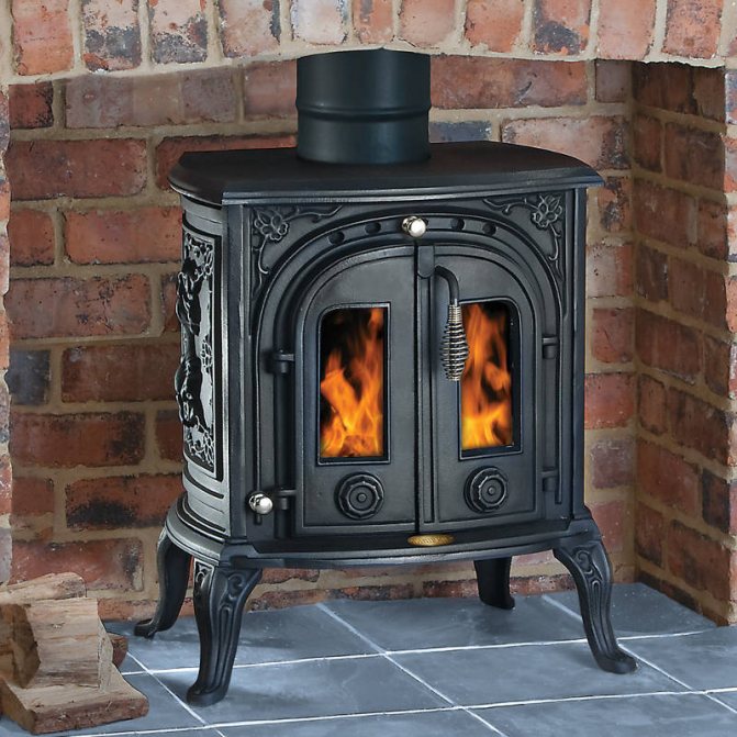 - Poêle de cheminée en fonte à combustion longue.