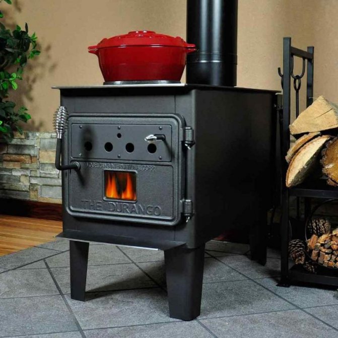 - Le poêle en fonte est un chauffage classique au bois, qui convient le mieux aux chalets d'été.