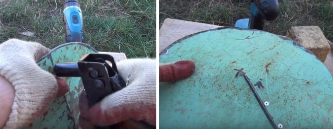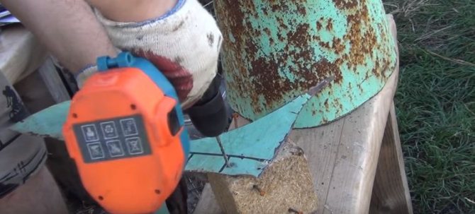 Étape 2. Assemblez le corps du déflecteur. Pour ce faire, au niveau des bords de son alésoir, percez des trous pour le diamètre des rivets. Commencez par percer d'un côté, puis pliez temporairement le corps et faites des marques de l'autre côté. Ils doivent correspondre exactement, sinon il y aura de gros problèmes lors de l'installation des rivets.