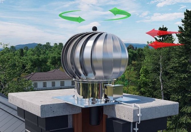 - En présence d'un déflecteur, peu importe la vitesse du flux d'air de l'extérieur et de quel côté le vent souffle, car il y a des espaces spéciaux dans le cylindre, qui aspirent la fumée avec de l'air .