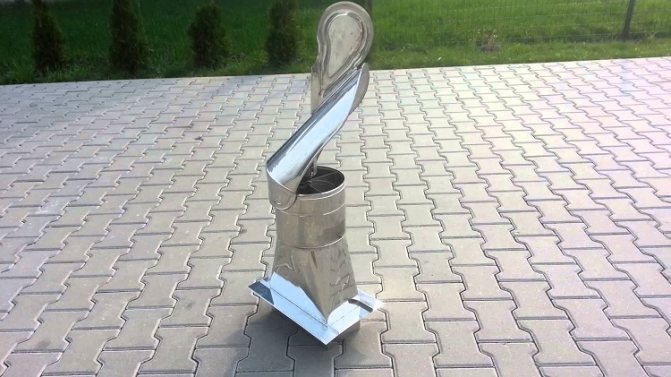 Le déflecteur est en acier galvanisé, cuivre et acier inoxydable. La principale exigence est une résistance élevée à la corrosion, car l'appareil sera installé sur une cheminée, où il sera extrêmement difficile d'effectuer des travaux de réparation, en particulier lorsqu'une chaudière de chauffage ou un poêle fonctionne.