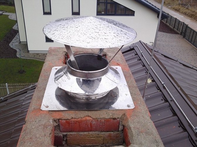 Une fonction auxiliaire de l'appareil est de protéger la cheminée des précipitations atmosphériques. La protection contre la neige et la pluie est assurée par deux facteurs: le corps du produit et une forte traction.