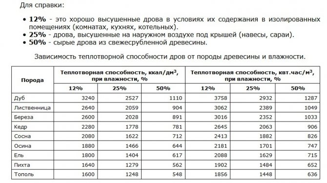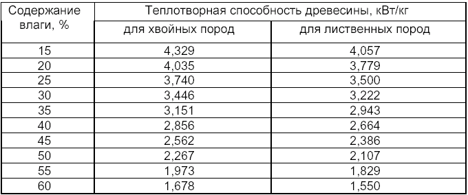En analysant cette formule, il peut être établi que le bois de chauffage récolté à partir de bois de conifères avec une humidité relative de 12 pour cent libèrera 3940 kilocalories lors de la combustion de 1 kilogramme, et le bois de chauffage récolté sur des arbres à feuilles caduques avec une humidité comparable libèrera 3852 kilocalories.