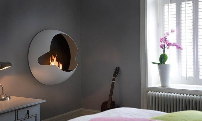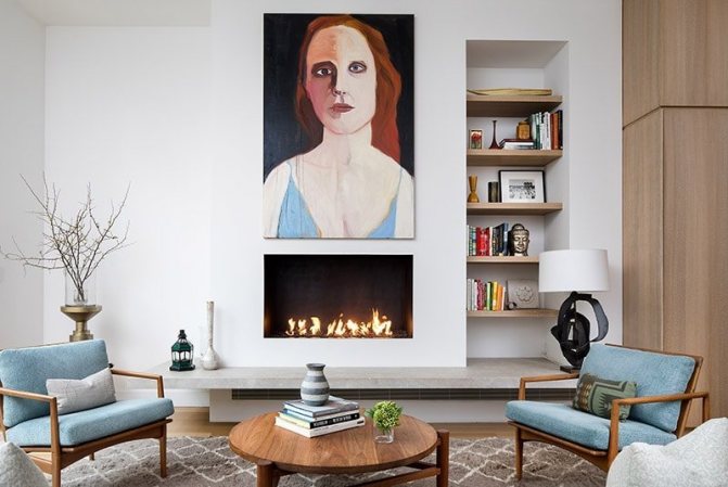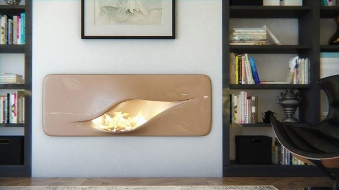 Intégré. Le type de cheminées le plus original. Ils peuvent être intégrés dans des comptoirs, des étagères murales, des peintures et d'autres éléments décoratifs.