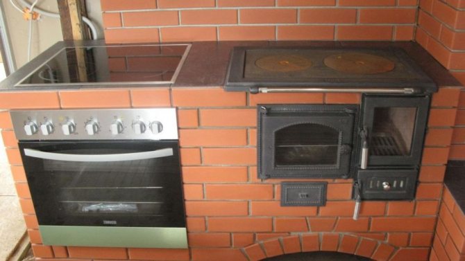 Un poêle en brique pour un brûleur de plaque de cuisson n'est pas non plus difficile à fabriquer de vos propres mains. C'est une chambre de combustion de forme carrée de 2,5 briques de longueur, où il y a un cendrier avec une porte en bas, dans la partie centrale il y a une porte en verre pour stocker le bois de chauffage (à travers laquelle vous pouvez observer la flamme brûlante), le le couvercle supérieur se termine par un poêle en fonte avec des cercles. Dans une telle structure, vous n'avez même pas besoin de disposer un tuyau. La cheminée est représentée par un canal sur le côté de la chambre de combustion, qui est connecté à un tuyau externe en métal ou galvanisé.