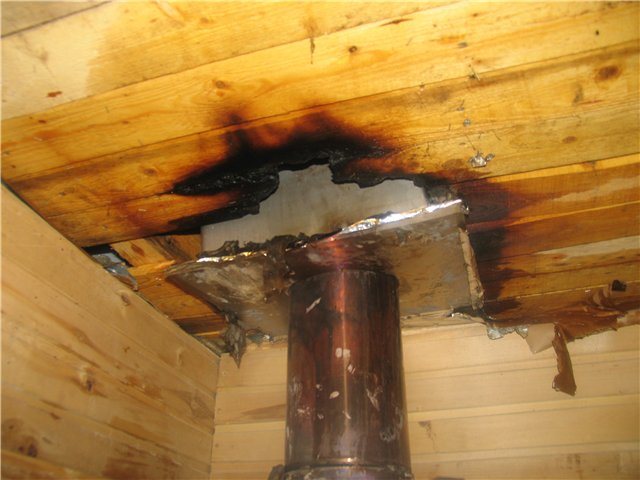 La cheminée sortant du poêle à souder, appelée intérieure, est reliée à la rue, au pipeline extérieur, dans le grenier ou dans la partie sous-toiture du toit. Le début de la cheminée interne est une section sortant du tuyau de cheminée, qui est reliée par un genou au plafond.