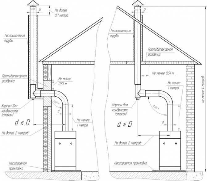 Mais le long tuyau principal sera la distance totale entre la sortie du tuyau et le poêle lui-même - les calculs dans chaque cas individuel seront différents, tout dépend de quel étage, à quel endroit de la pièce et à quelle hauteur, le potbelly poêle sera localisé.
