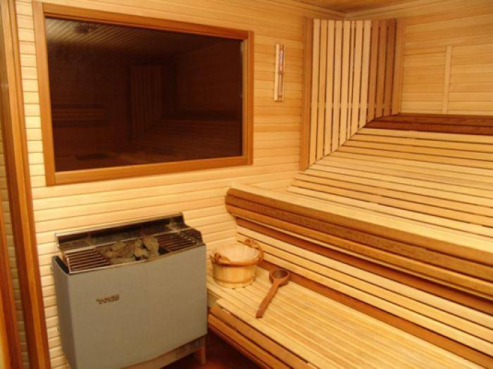 Le hammam se présente sous la forme d'une pièce équipée d'un poêle-réchauffeur électrique intégré. Un sauna électrique est installé aussi bien dans les lieux publics qu'à la maison. L'absence de source de flamme ouverte permet d'installer une cabine de sauna électrique même dans un appartement. A l'aide d'un radiateur électrique, la pièce se réchauffe très rapidement.