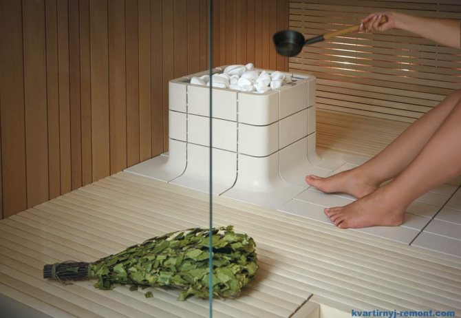 Tout le monde ne peut pas se permettre de faire cet achat. Le poêle en pierre se distingue par ses dimensions et son poids élevés, mais c'est lui qui donne la chaleur profonde et la vapeur si appréciée dans le bain.