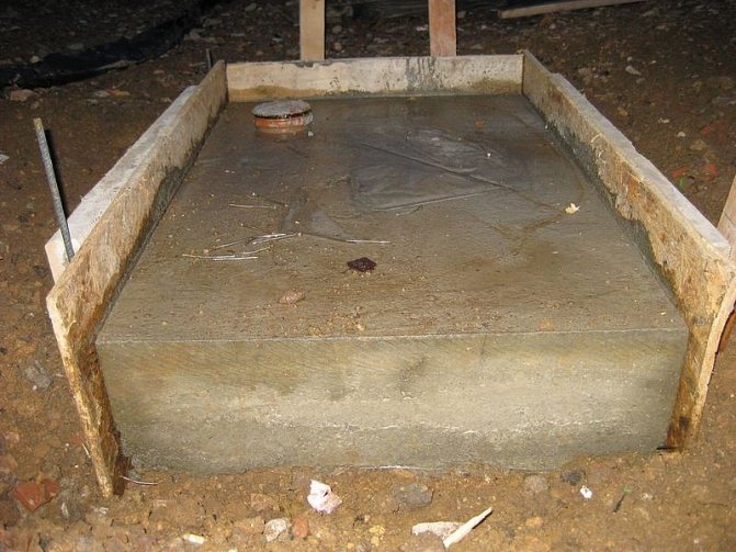La fondation elle-même peut être constituée de briques réfractaires ou de moellons. La version béton nécessite la fabrication de coffrages avec imperméabilisation, dans lesquels de grandes et petites pierres sont ensuite posées et coulées avec du béton.