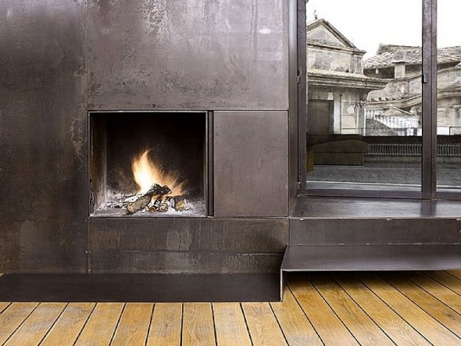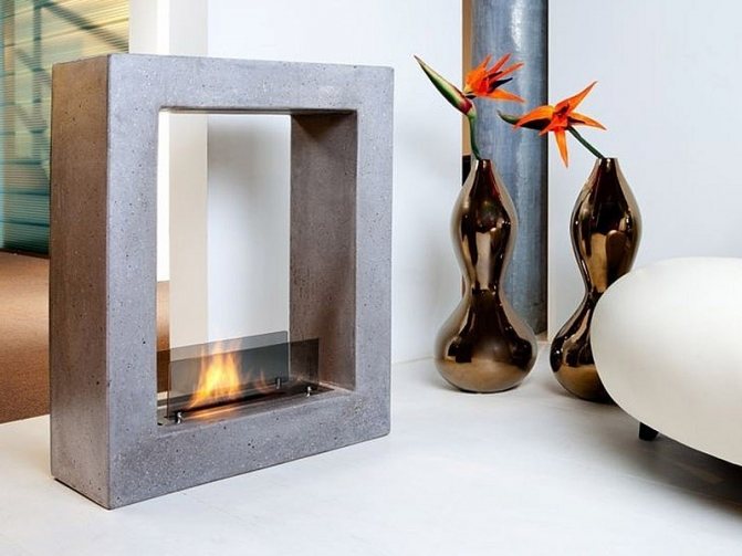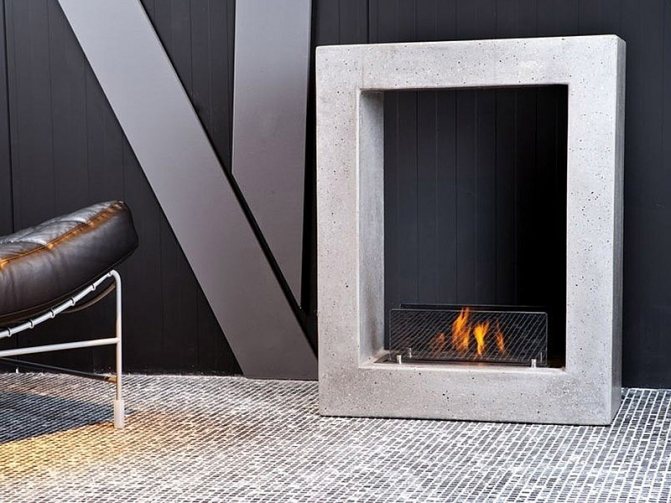 Une cheminée dont la décoration et l'assemblage sont en béton peut non seulement avoir un cadre en ce matériau. Le béton peut être utilisé pour créer des murs ou des cloisons séparés de la structure, de la cheminée, du comptoir et d'autres éléments décoratifs du poêle.