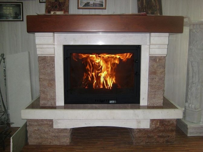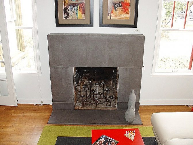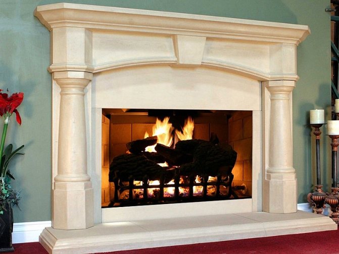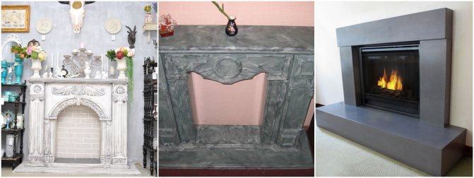 le portail de la cheminée peut être constitué d'un socle en béton mélangé sur une certaine base. La composition à base de GRC est très populaire. Si nous considérons la composition plus en détail, cette substance est constituée de particules renforcées et de fibres de verre. Pour cette raison, le portail du four acquiert une résistance et une stabilité maximales et tolère bien les températures élevées.