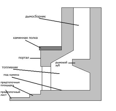 Important! La tâche principale dans le processus de construction d'un foyer est la construction correcte de ses principaux éléments, ce qui garantira l'absence de fumée dans la chambre de combustion.