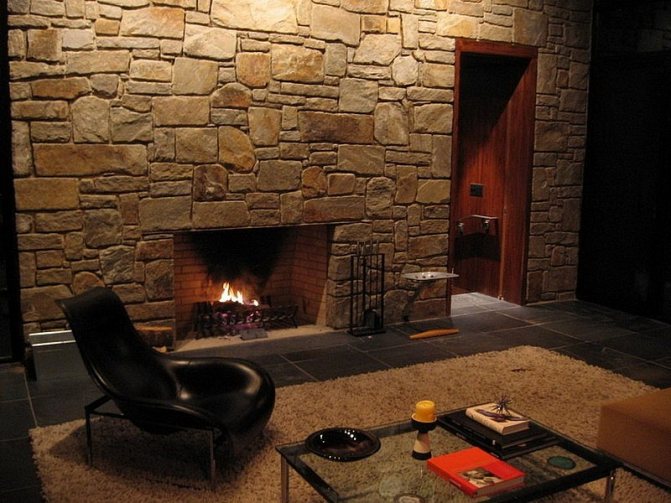 La cheminée, qui est tapissée de pierre naturelle, est certainement très élégante. Cependant, le coût d'un tel portail est assez élevé et l'installation et l'assemblage du cadre sont impossibles sans expérience, outils professionnels et gros investissements. Le béton dans ce cas présente un avantage, car même un débutant inexpérimenté peut travailler avec.
