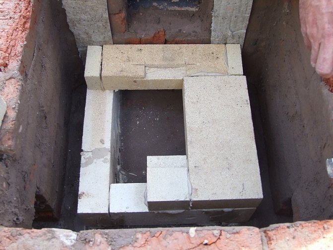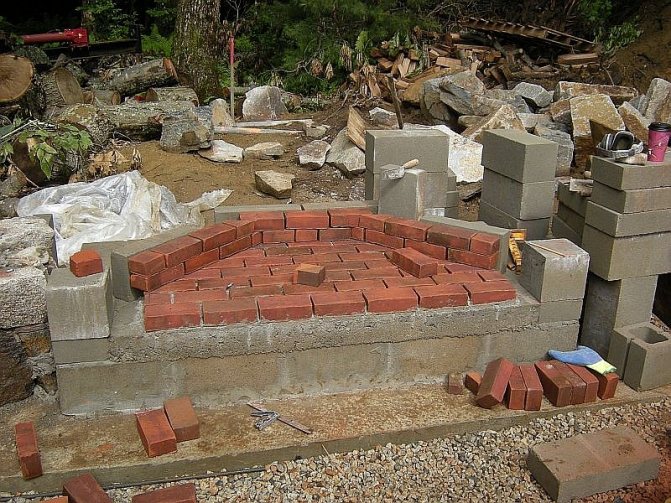 Pour les structures de foyer léger, il est recommandé d'utiliser une fondation en blocs ou partiellement en brique. La dernière technologie consiste à remplir une tranchée avec de la pierre, de la pierre concassée ou de gros cailloux et à poser plusieurs rangées de briques.