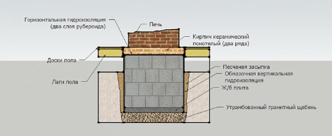 Toute fondation pour une cheminée dans une maison en bois doit être de 50 à 60 cm au-dessus du sol et de 6 à 7 cm sous le sol.