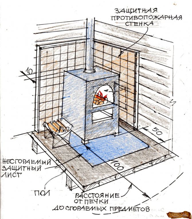 Ceci est nécessaire pour la facilité d'utilisation en raison de sa connexion au tuyau de cheminée. Un autre aspect important est que les bases de la maison et le poêle ne doivent pas se toucher, il doit y avoir un coussin de sable entre eux.