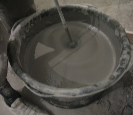 - Après pelletage et obtention d'une masse homogène, de l'eau est ajoutée progressivement jusqu'à ce qu'une solution de consistance de crème sure épaisse se forme. La solution peut être versée.