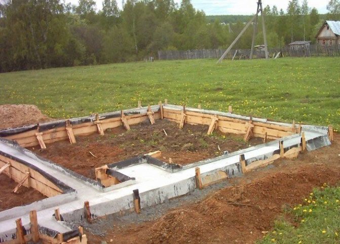Pour l'imperméabilisation de la fondation, une couche de matériau de toiture est fixée sur le côté intérieur du coffrage à l'aide d'une agrafeuse de construction. Vous pouvez commencer à verser