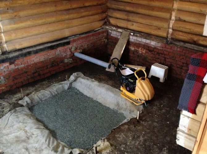 - Couler la dalle. La base est formée de mortier de béton, dans lequel un cadre rigide en moellons de rivière ou en ferraillage est introduit.