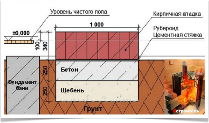 Dans la plupart des cas, les types de fondations suivants pour un poêle de bain sont utilisés: